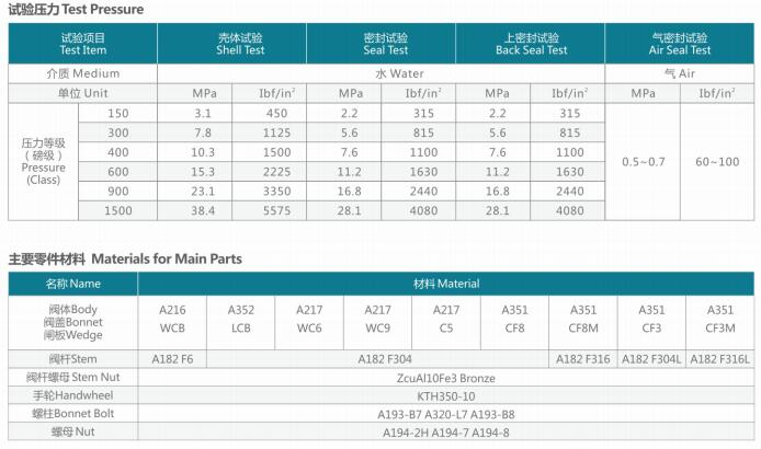 美标鑄鋼閘閥技術參數