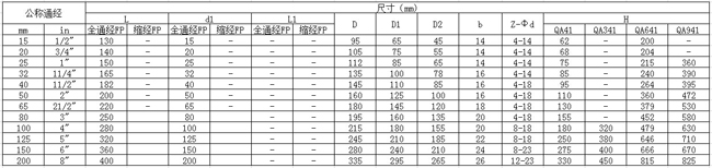 【Q41H鍛(duàn)鋼三片式硬密封球閥(fá)主要連接尺寸及重】